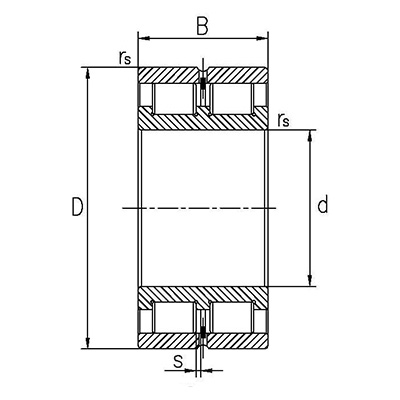 為了使軸承正常工作,在連續(xù)運(yùn)轉(zhuǎn)的情況下,軸承必須承受一定的最小負(fù)荷,即C/P<25。否則因潤(rùn)滑不足和高速運(yùn)轉(zhuǎn)時(shí)會(huì)加劇磨損。所有多列圓柱滾子軸承在外圈上有一潤(rùn)滑槽和潤(rùn)滑孔。